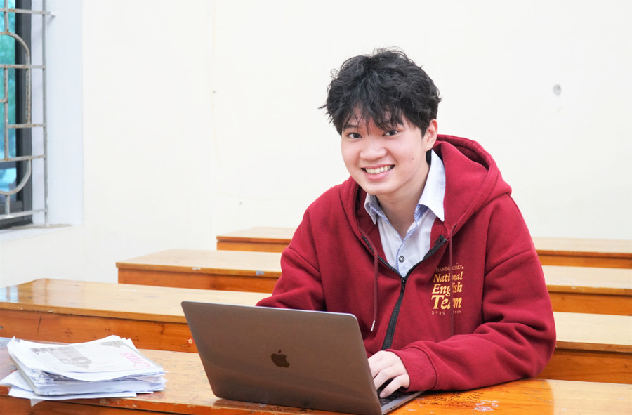 Với 16,3 điểm Trần Nhật Nam là thí sinh có điểm cao nhất của đội tuyển môn Tiếng Anh của Trường THPT chuyên Phan Bội Châu và nằm tốp 3 của cả nước. Ảnh: Hồ Lài