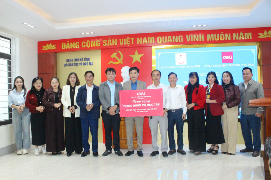 Chiều 28/11, Sở GD&ĐT Hà Tĩnh phối hợp với Công ty TNHH Phát triển Deli Việt Nam trao 70.000 sản phẩm dụng cụ học tập, trị giá khoảng 450 triệu đồng cho học sinh tại các trường chịu thiệt hại do bão lũ.