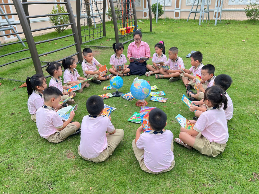 Học sinh Trường Tiểu học Cửa Nam (Nam Định, Ninh Bình) tham gia tiết học đọc sách ngoài trời.