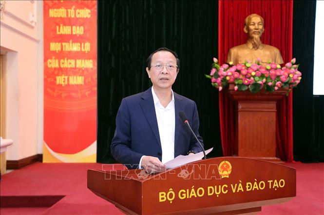 Thứ trưởng thường trực Bộ Giáo dục và Đào tạo Phạm Ngọc Thưởng phát biểu khai mạc. Ảnh: TTXVN phát
