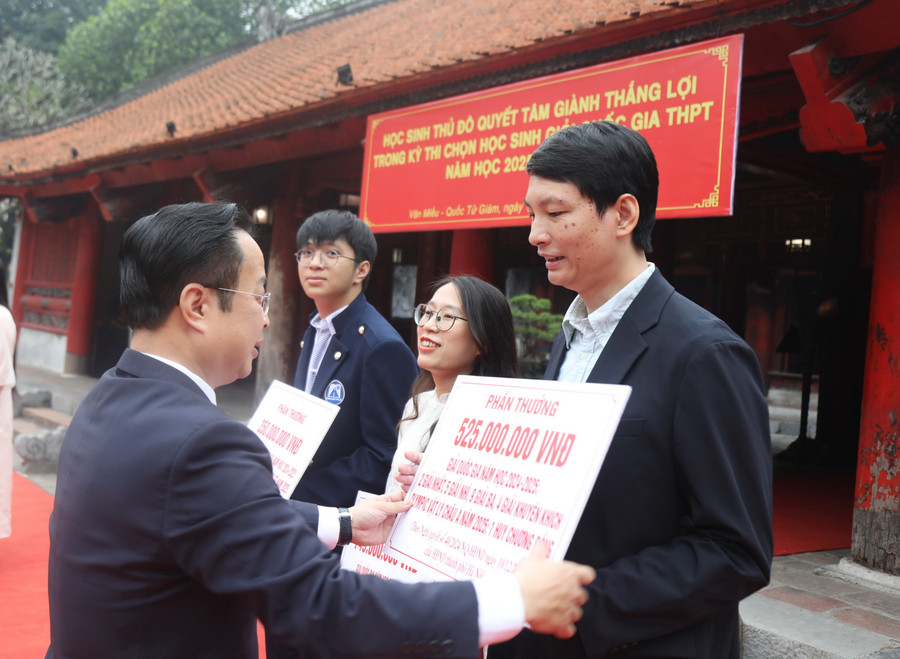 Tại buổi gặp mặt, lãnh đạo thành phố và ngành Giáo dục Thủ đô đã biểu dương, trao thưởng học sinh, giáo viên giành huy chương tại các kỳ thi quốc gia, quốc tế năm học 2024-2025. Đây là phần thưởng được chi theo Nghị quyết số 40/2024/NQ-HĐND của HĐND thành phố Hà Nội. Tổng kinh phí giải thưởng là hơn 22 tỷ đồng.