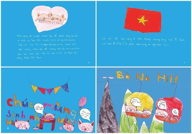 Tác phẩm “Ngày đầu đi học - Trường học Mèo Hà” do tác giả nhí IVANKA Phan Ngọc Thư Hà sáng tác và minh họa. Ảnh: VietKings.