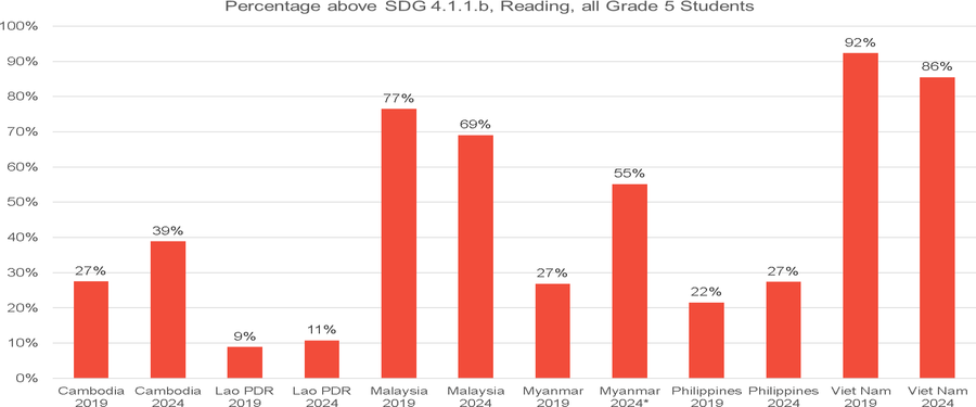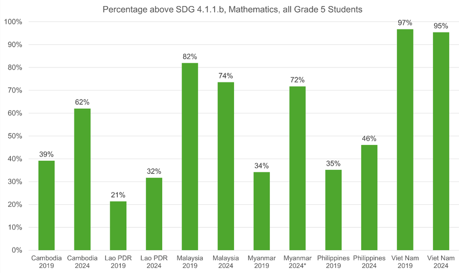 Theo báo cáo được công bố bởi Ban Thư ký SEAMEO cho thấy học sinh lớp 5 ở khu vực có giữ ổn định kết quả Đọc hiểu và tăng lên một tỷ lệ nhỏ ở kết quả Toán học.