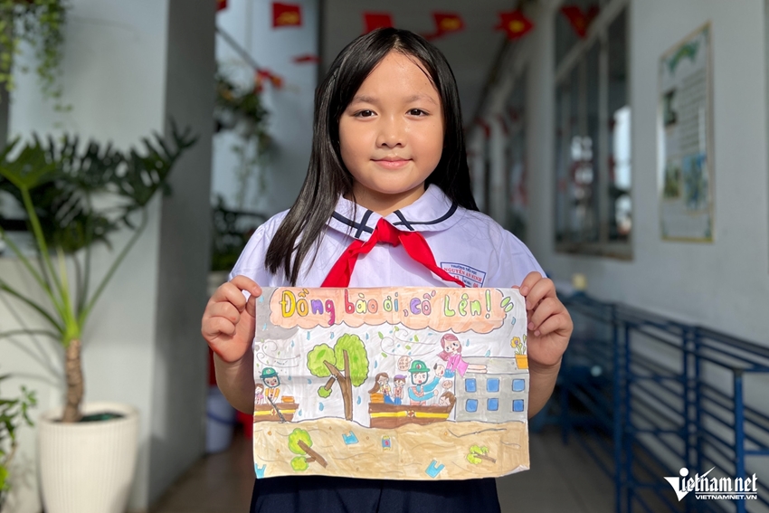 Em Lê Nguyễn Linh Đan bày tỏ, khi xem những hình ảnh lũ lụt, em rất thương các bạn nhỏ phải sơ tán lên vùng cao để tránh lũ. “Con mong mọi người trong vùng lũ sẽ an toàn, các bạn có thể sớm trở lại cuộc sống bình thường và đến lớp học trở lại”, Linh Đan chia sẻ.