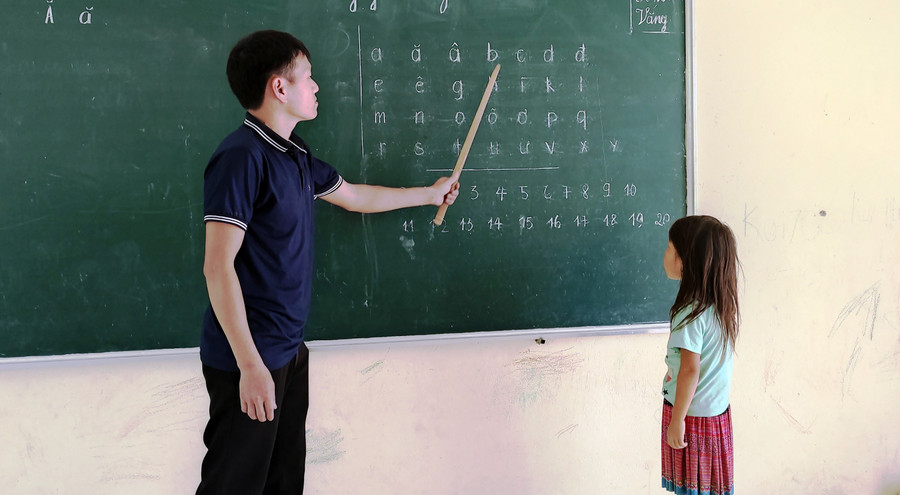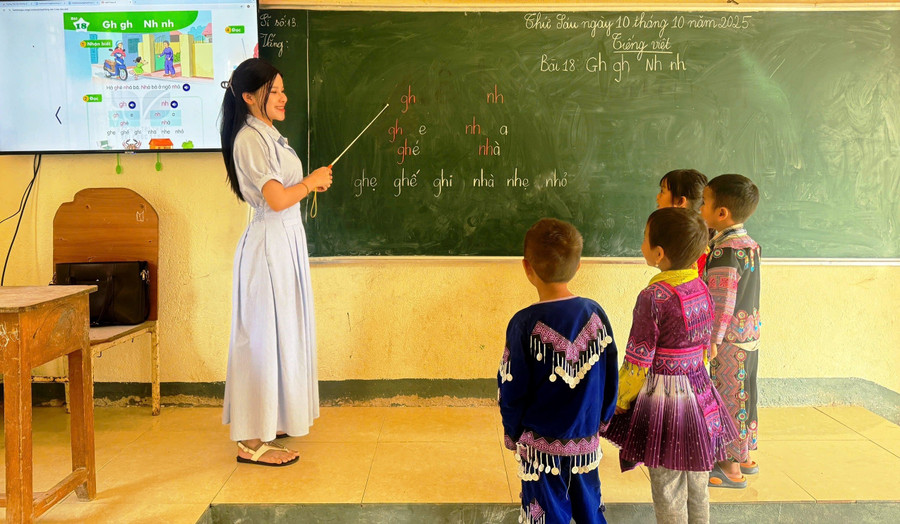 Dạy tiếng Việt cho học sinh dân tộc thiểu số không chỉ là thử thách với học trò, mà còn là bài toán khó với giáo viên. Phần lớn giáo viên không thành thạo tiếng dân tộc, đặc biệt là tiếng Mông, Dao, Khơ Mú…, nên không thể dùng tiếng mẹ đẻ để hỗ trợ. Họ phải tận dụng tối đa cử chỉ, tranh ảnh, mô hình trực quan và lặp đi lặp lại từ ngữ để học sinh hiểu bài.