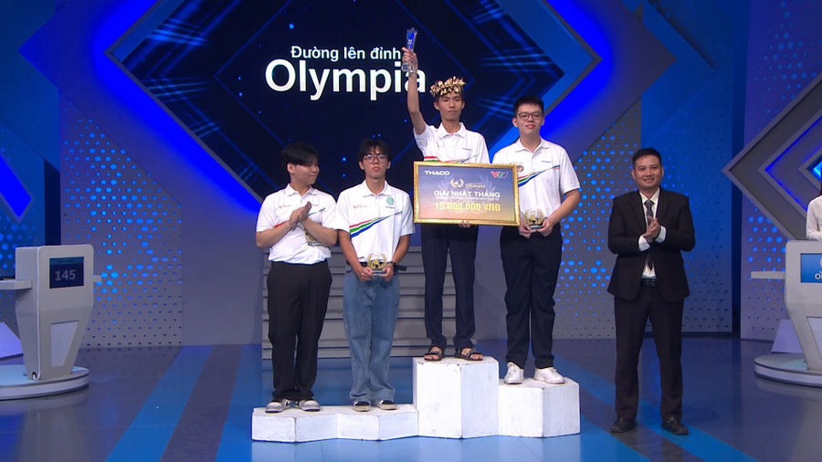 Theo Giáo dục thời đại - Từ vị trí thứ ba, nam sinh Nguyễn Đức Anh đến từ Hải Phòng đã vươn lên giành vòng nguyệt quế sau trận thi tháng Olympia kịch tính.