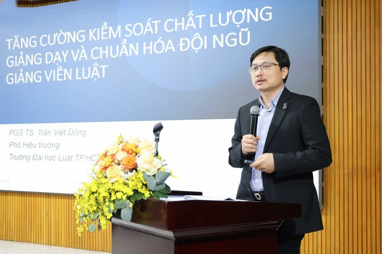 Trong tham luận tại hội nghị, PGS.TS Trần Việt Dũng - Phó Hiệu trưởng Trường Đại học Luật TPHCM cho biết, nhà trường đang triển khai mạnh mẽ chiến lược nâng cao chất lượng đội ngũ và tăng cường kiểm soát chất lượng giảng dạy.