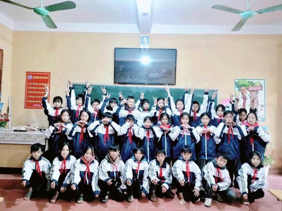 Những chiếc áo đồng phục cô Hướng mang đến cho các em nhỏ ở vùng cao.