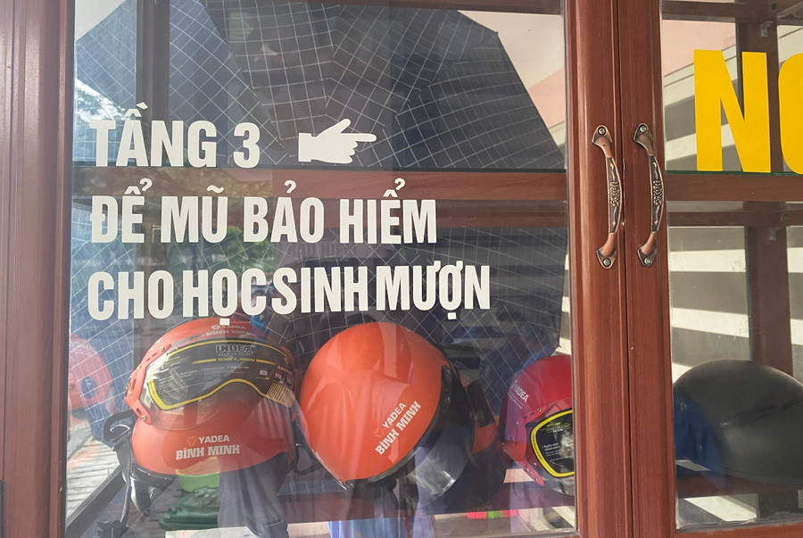 “Nhiều hôm tan trường, tôi thấy vài em không đội mũ bảo hiểm khi về. Hỏi ra thì có em quên, có em làm hỏng, thậm chí có em không có. Từ đó, tôi nghĩ cần có chỗ cho học sinh mượn mũ bảo hiểm để đảm bảo an toàn”, thầy kể.