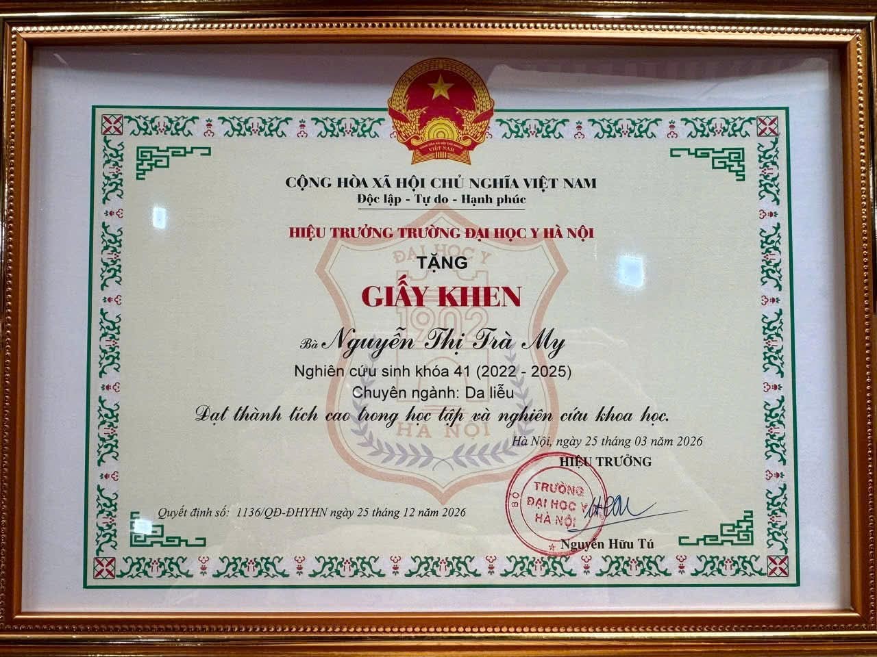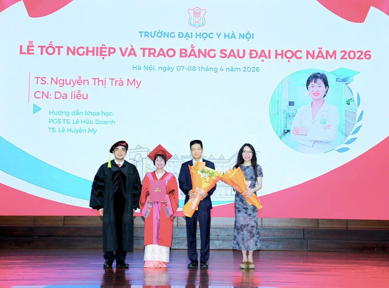 Ngày 7/4/2026, tại lễ trao bằng sau đại học của Trường Đại học Y Hà Nội, TS. Nguyễn Thị Trà My được vinh danh là tân tiến sĩ có thành tích xuất sắc trong học tập và nghiên cứu khoa học.