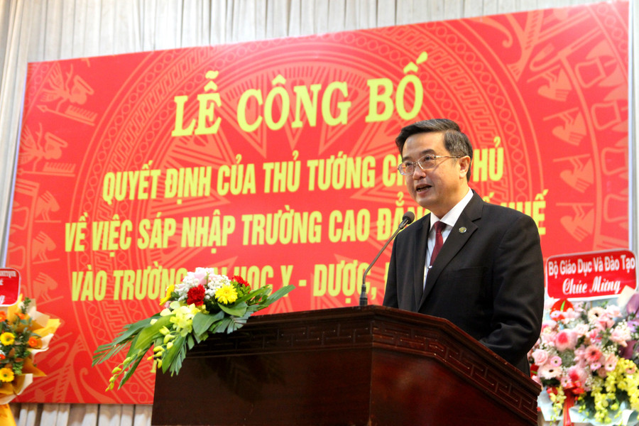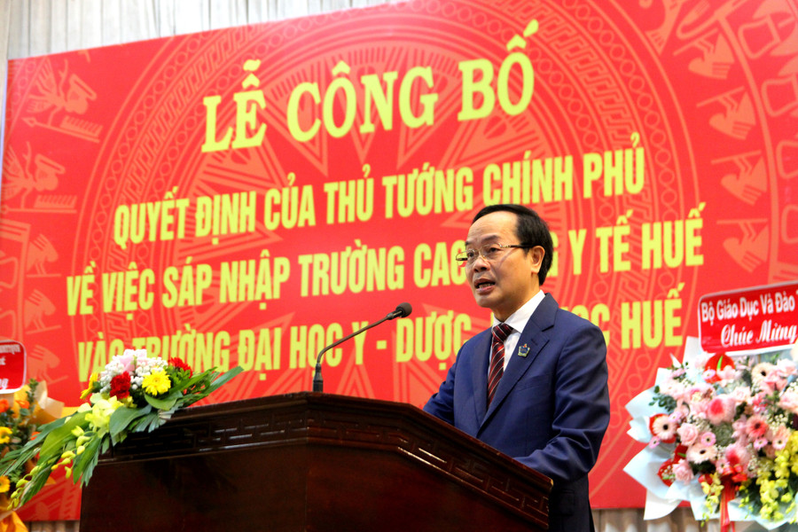 Phát biểu tại buổi lễ, TS Lê Đình Nghị, Vụ trưởng Vụ Tổ chức cán bộ (Bộ GD&ĐT) nhấn mạnh, việc sáp nhập Trường Cao đẳng Y tế Huế vào ĐH Y Dược Huế để phát triển theo mô hình Trường - Viện đạt tiêu chuẩn cấp quốc gia, hướng đến đạt chuẩn quốc tế về giáo dục và y tế, đáp ứng yêu cầu Chiến lược quốc gia về chăm sóc và nâng cao sức khỏe nhân dân và quy hoạch mạng lưới cơ sở y tế đến năm 2030 tầm nhìn đến năm 2045.
