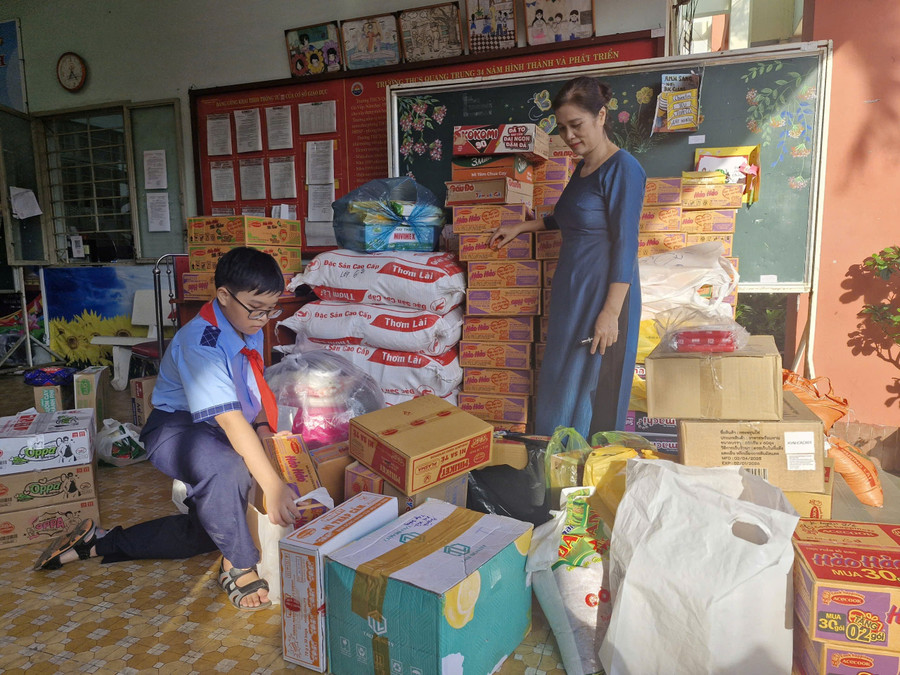 Tương tự, thầy trò Trường Tiểu học Lê Đình Chinh (phường Minh Phụng, TPHCM) cũng đã bắt đầu tuần học mới với bài học “Yêu Tổ quốc, yêu đồng bào” thông qua phát động quyên góp ủng hộ đồng bào vùng lũ lụt. Ngay từ sáng sớm, các em học sinh đến trường đã mang theo những niềm chia sẻ, yêu thương.