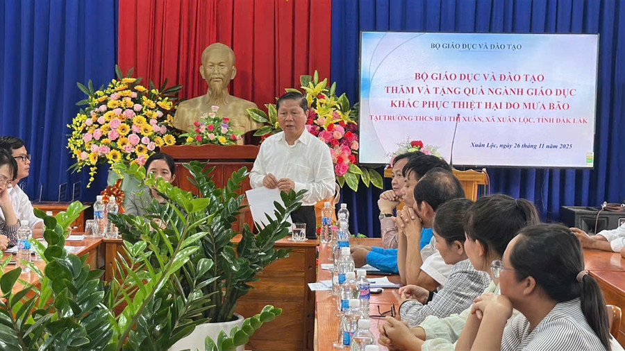 Ngày 26/11, trong chuyến thăm, động viên thầy và trò các trường học bị thiệt hại nặng do bão, lũ ở Đắk Lắk, Thứ trưởng Bộ GD&ĐT Lê Tấn Dũng cho biết, đối với các trường chưa đủ điều kiện an toàn, hiệu trưởng nhà trường được quyền quyết định thời gian cho học sinh trở lại trường học tập; đồng thời, linh hoạt về thời gian trong dạy học nhằm bảo đảm tiến độ chương trình và chất lượng giáo dục.