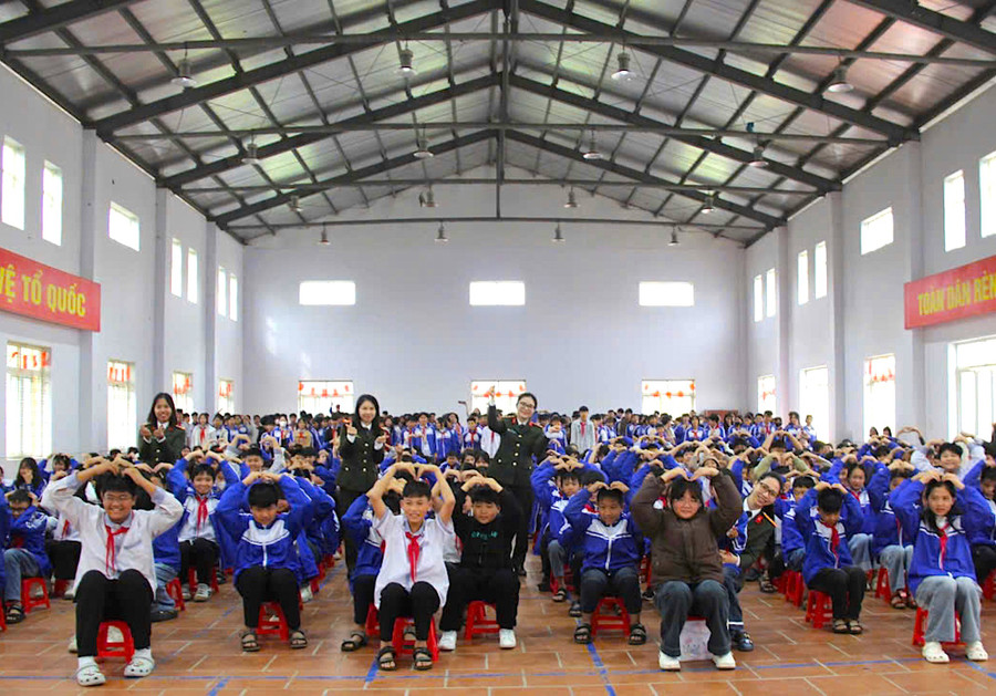 Sáng 5/1, Trường THCS Thái Phương (xã Tiên La, tỉnh Hưng Yên) phối hợp với Phòng Tham mưu Công an tỉnh tổ chức chuyên đề "Phòng chống bắt cóc online".