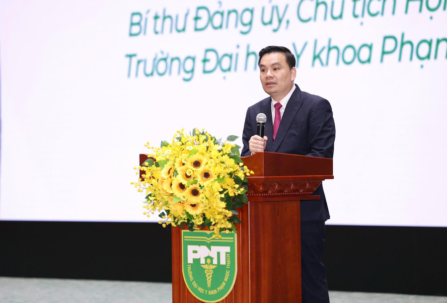 PGS.TS Nguyễn Trọng Hào, Chủ tịch hội đồng Trường Đại học Y khoa Phạm Ngọc Thạch phát biểu tại buổi lễ.